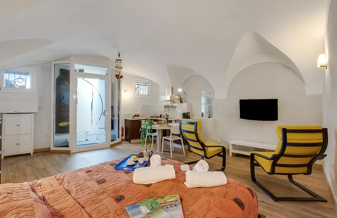 Tijdens het verkennen van Gardone Riviera kunnen gasten gemakkelijk Giardino Botanico Fondazione André Heller binnen 5 minuten wandelen ervandaan bereiken. Chiesa di San Nicolò da Bari en Duomo of Salò liggen binnen 150 meter van en op 2 km van het 1-slaapkamer appartement.